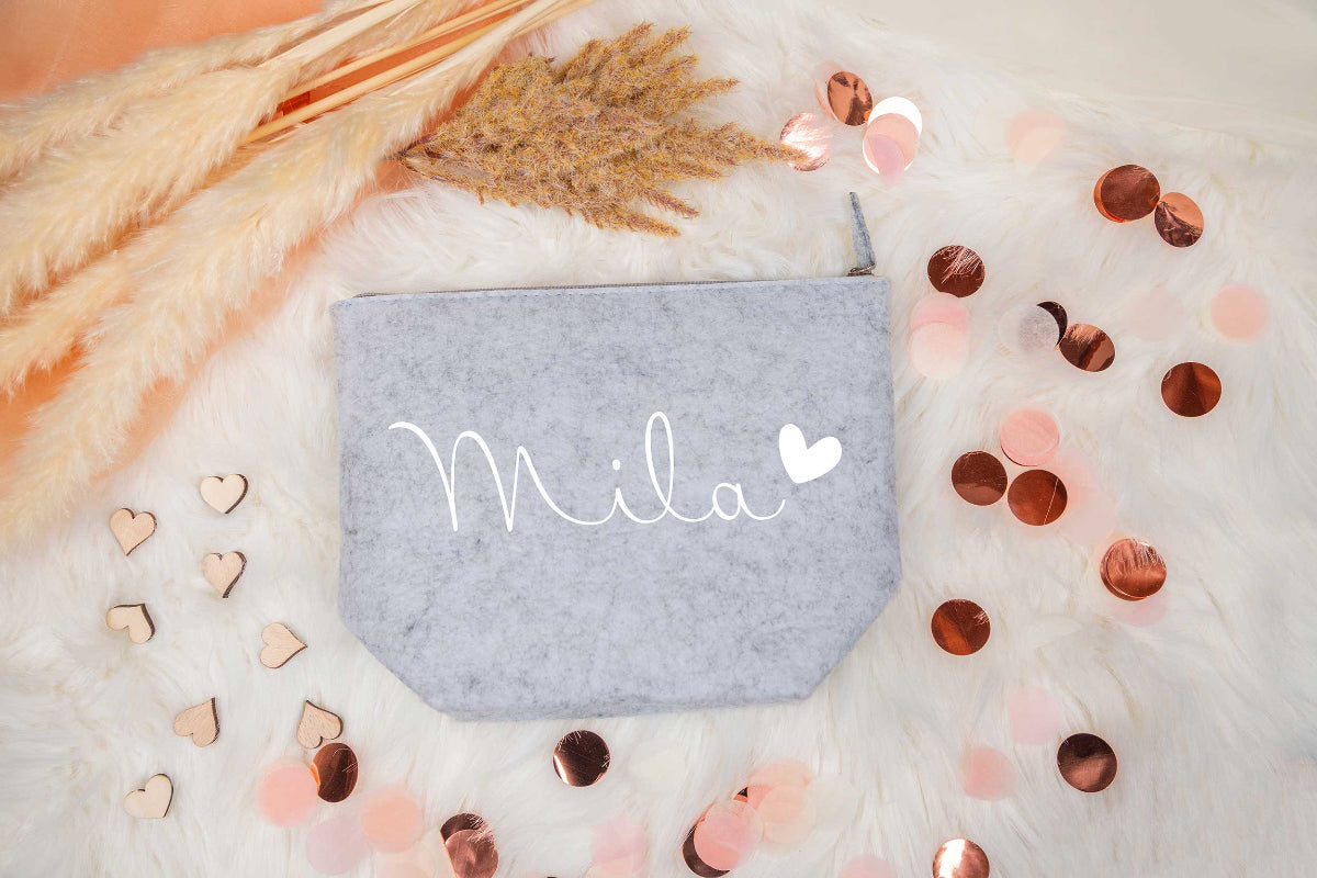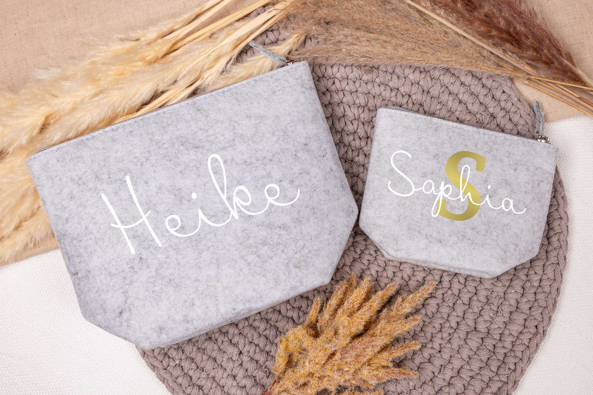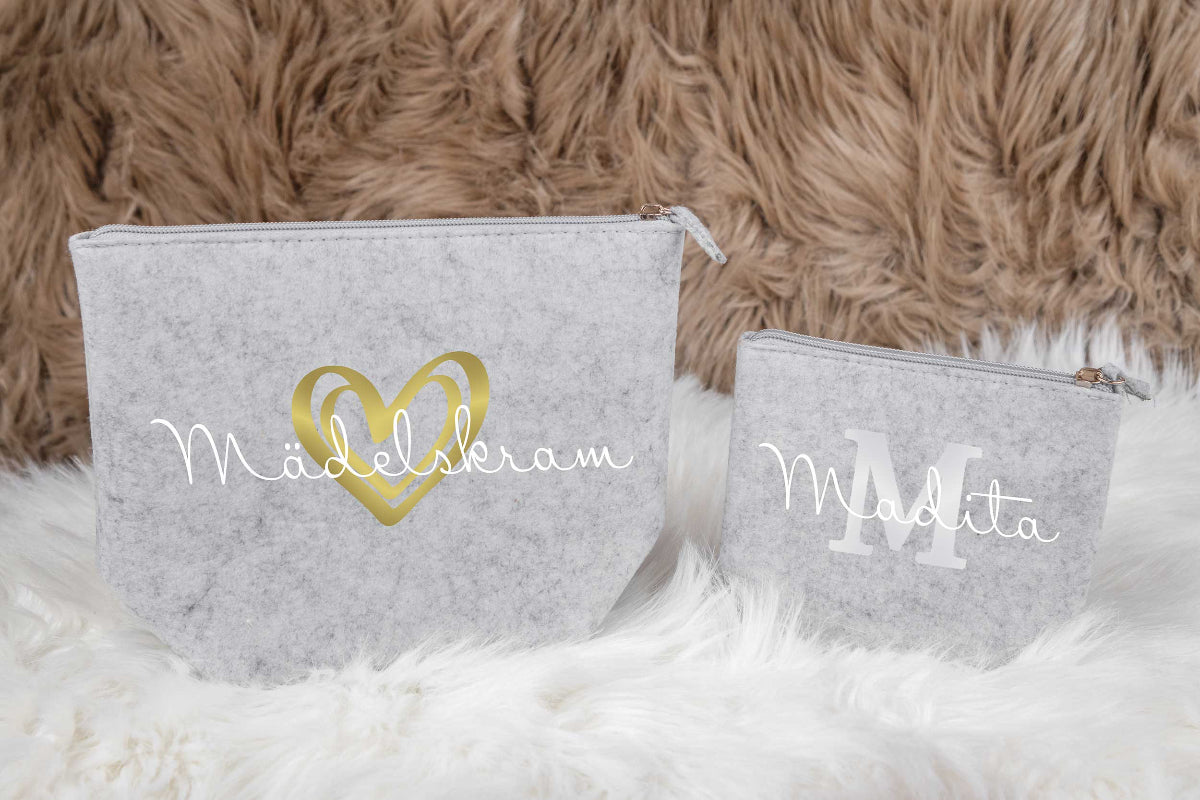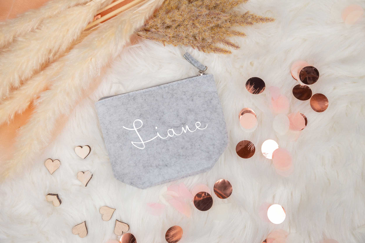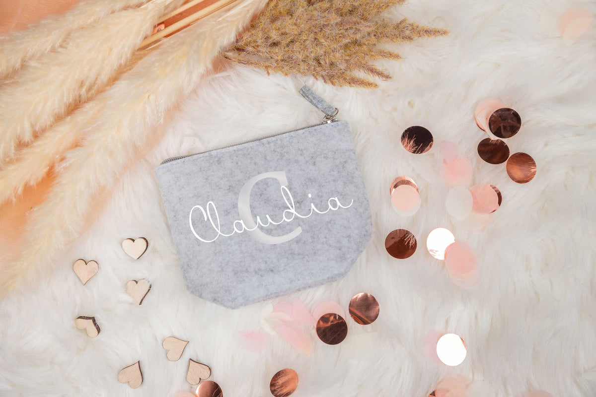 Unsere personalisierte Filz-Kosmetiktasche ist ein perfektes Geschenk zum Geburtstag, zum Mädelsabend, zum Junggesellinnen-Abschied ,als kleine Dankeschön/ Präsent oder einfach für sich selbst zum Selbstbehalten und freuen. ✨