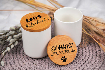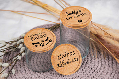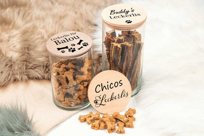 Bei uns kannst du Dir dein persönliches Leckerliglas für deinen Hund oder deine Katze gestalten. So gönnst du Dir und Deinem Haustier etwas Gutes.
