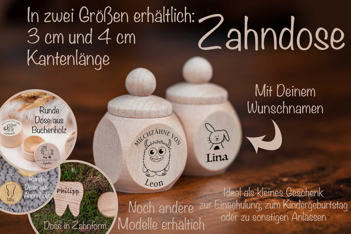 Der erste Wackelzahn ist ein besonderer Moment für ein Kind und genauso besonders ist auch diese Milchzahndose, denn du entscheidest wie sie personalisiert werden soll.🦷😁
