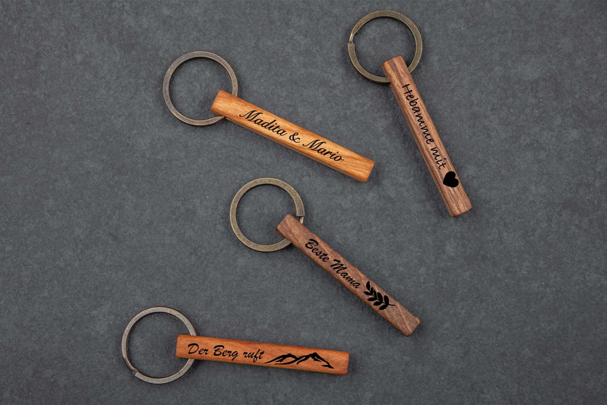 Hier geht's zum Schlüsselanhänger mit einer Gravur auf bis zu vier Seiten >