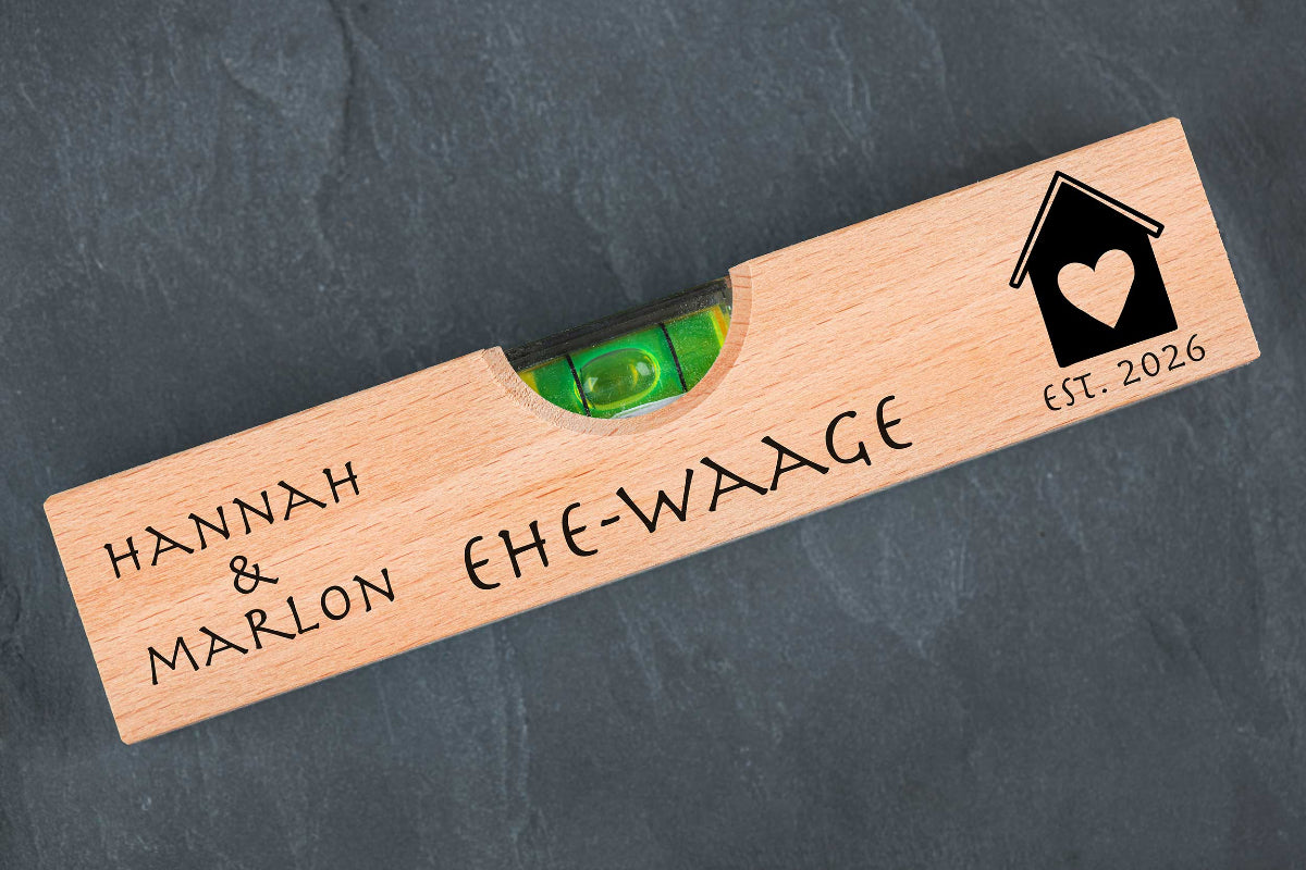 Personalisiertes Hochzeitsgeschenk mit Deiner Wunschgravur - Mini-Wasserwaage