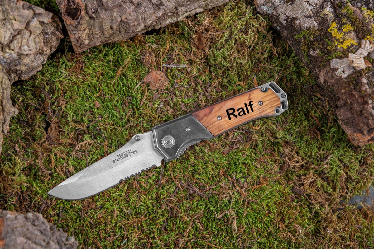 Personalisiertes Taschenmesser mit Gürtelhalterung