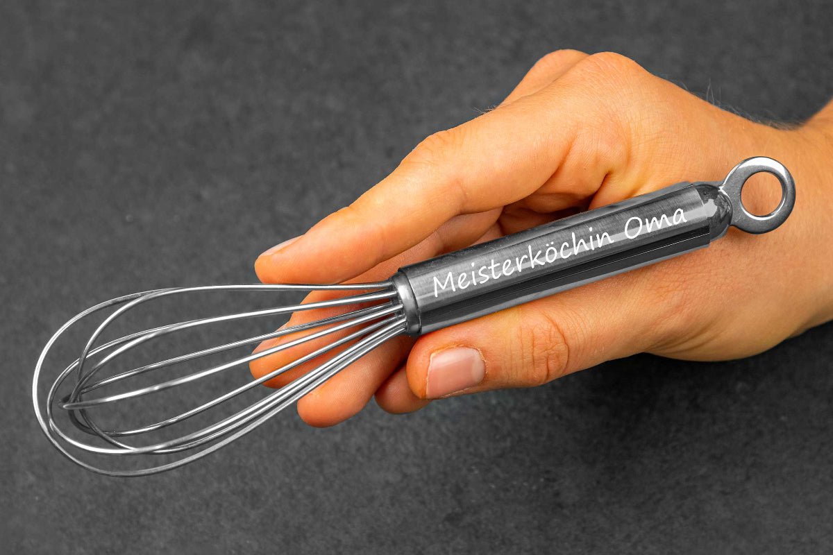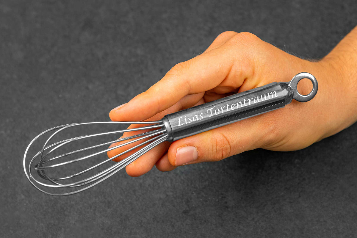 Ein Schneebesen ist ein unerlässlicher Küchenhelfer, der in wirklich keiner Küche fehlen darf. Den besonderen Touch verleiht ihm Deine Wunschgravur.