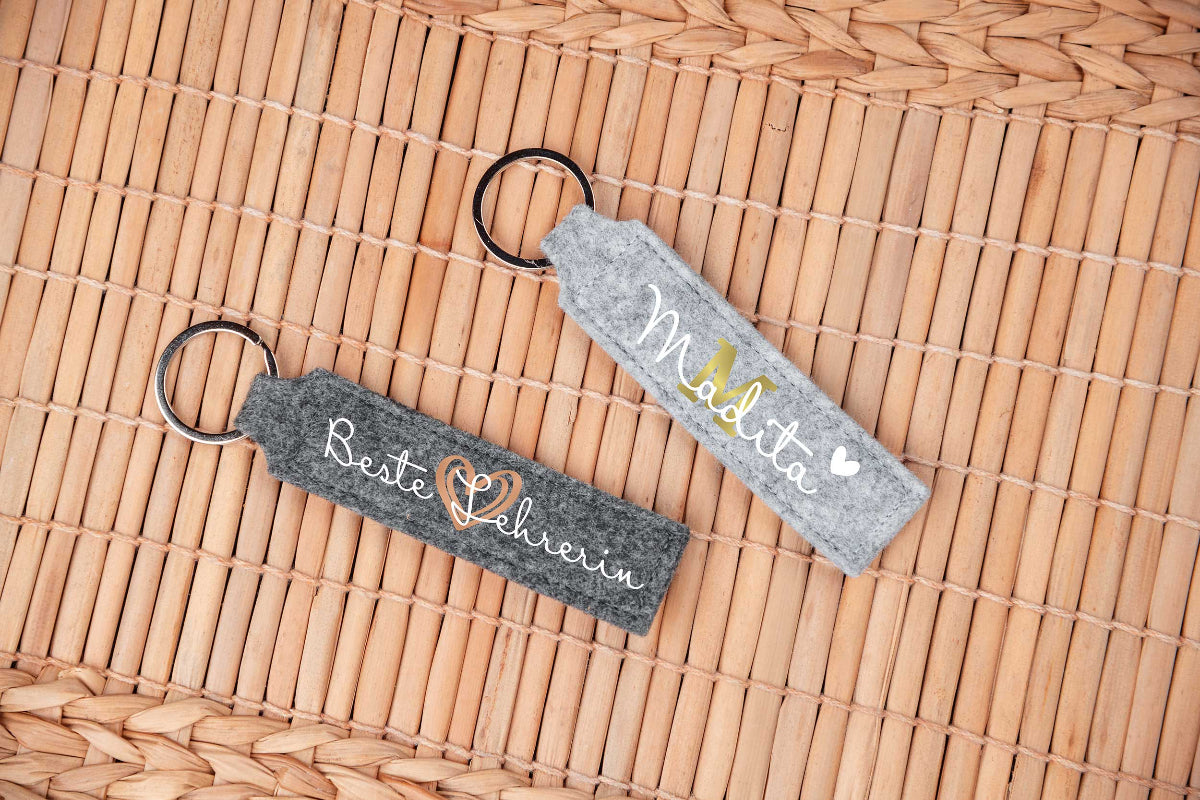 Schlüsselanhänger personalisiert mit Namen und Text aus Filz