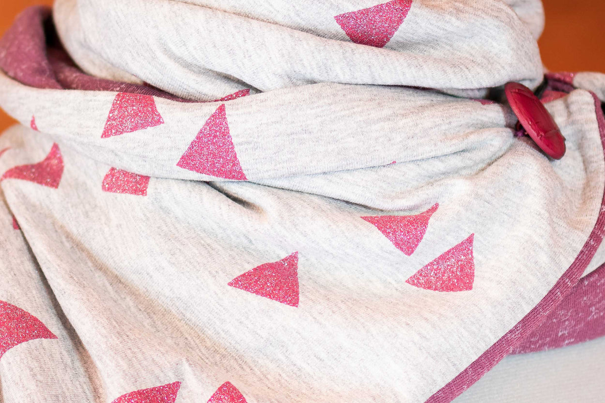 Schal in hellgrau mit rosafarbenen Dreiecken - Wickelschal handgemacht, selbstgenäht