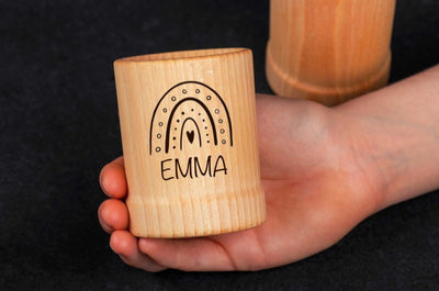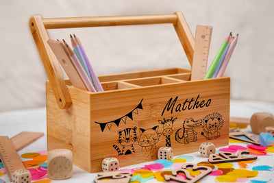 Stiftehalter personalisiert aus Bambus ideal zur Einschulung oder zum Schulanfang