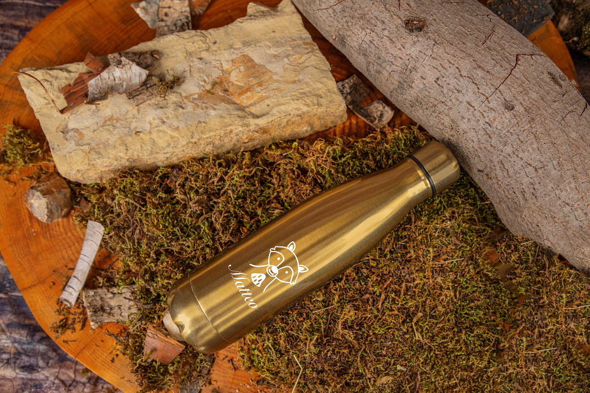 Diese personalisierte Isolierflasche ist der perfekte Begleiter für die Arbeit, die Schule, den Kindergarten oder bei jedem Ausflug ins Freie. Sie ist eine nachhaltige und vor allem individuelle Trinkflasche, die genau nach Deinem Wunsch personalisiert wird.😊
